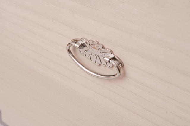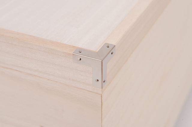持ち手には菊の紋の入った取っ手を採用。隅金具には、桐たんす特有のしっぽうどめを施しています。桐の収納ケースを際立たせる上品なシルバーカラーの飾り金具が、高級感を更にアップさせます。