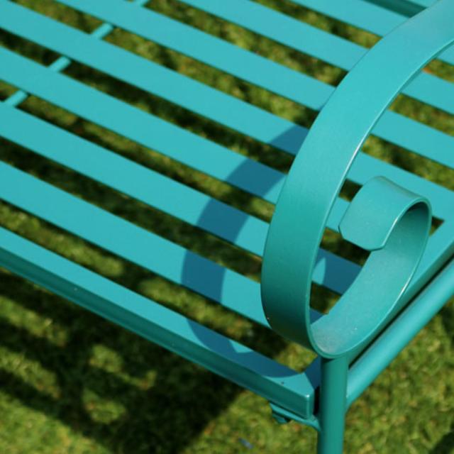 木陰に気軽に置きやすい幅105.5cmの2人掛けサイズです。公園や遊歩道などのパブリック空間にもおすすめです。
