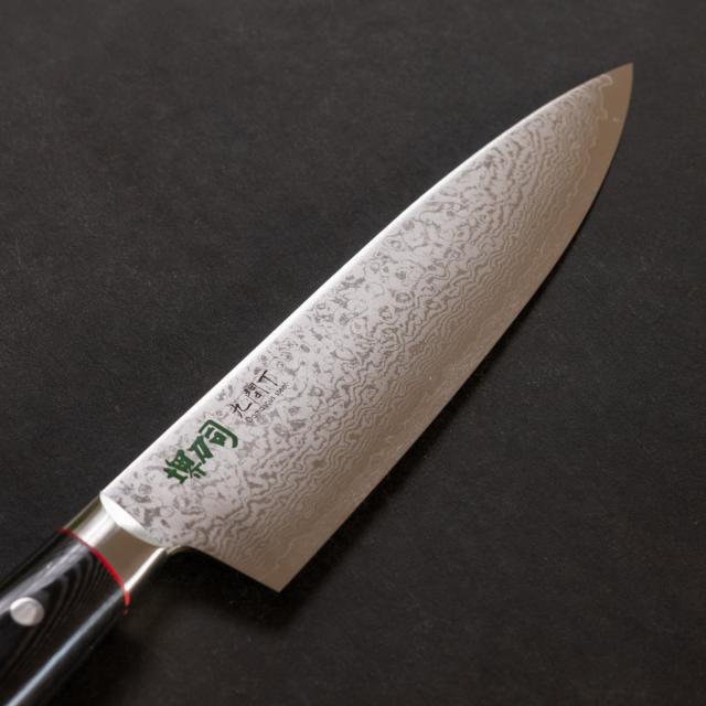 牛刀 20cm 九間丁 ダマスカス鋼割込 黒マイカルタ 堺刀司 日本製 ( シェフナイフ 包丁 料理包丁 万能包丁 キッチンナイフ 文化包丁 高級包丁 ダマスカス包丁 20センチ 200mm 200ミリ 両刃 調理小物 調理道具 下ごしらえ用品 )