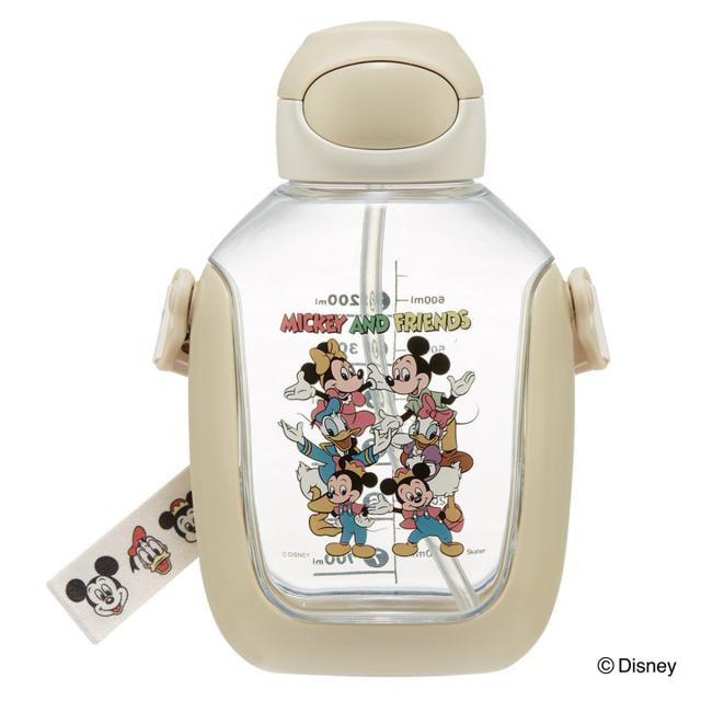 水筒 780ml ワンプッシュストローボトル ミッキー&フレンズ ( ミッキー ストローボトル 目盛り クリアボトル ワンプッシュ ワンタッチ ストロータイプ 子供 子供用水筒 ショルダーベルト 幼稚園 保育園 キッズ )
