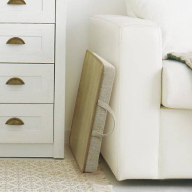 スリムな厚みなので使わないときは、ソファの横や棚の隙間に立てて収納できます。