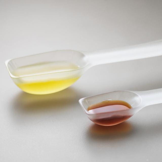 剥離性の高いTPX樹脂素材を使用し、スプーンの深さや形状を工夫することで、調味料がスプーン内に残りにくくなっています。