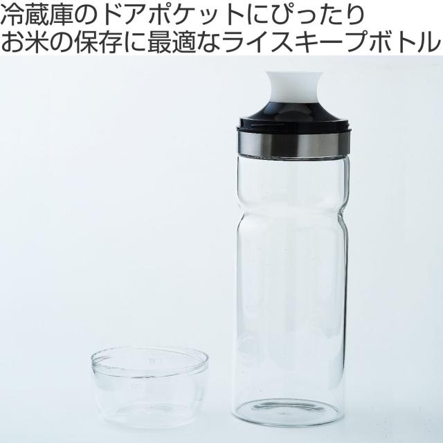 米びつ 1kg Felio 計れるキャップ付 ライスキープボトル ( 保存容器 ガラス 米櫃 ライスストッカー 冷蔵庫 密閉 ドアポケット 密閉容器 お米 米 保存 計量カップ付き ライスボックス 米びつ 計量)