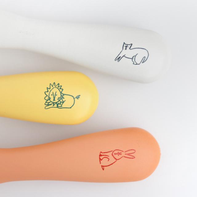 可愛いどーぶつのイラストが描かれたスプーンとフォークのセットです。お子様自身が使いやすい形状で、自分で食べたい意欲を育ててくれます。
