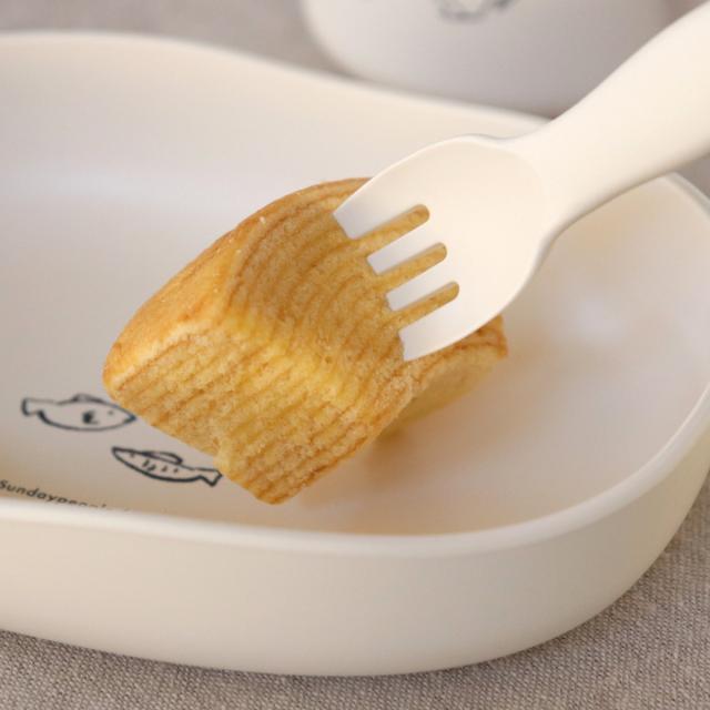 フォークは先が尖りすぎていないのでお子様が使っていても安心です。刺して食べるだけでなく、すくっても食べられる形状なので、お米やポテトサラダも自分ですくって食べられます。
