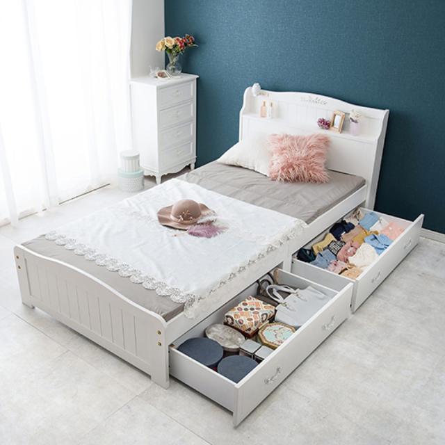 服や家電を収納できる収納スペース付きです。引出しはベッドの右側左側どちらでも使えるので、お部屋に合わせてレイアウトできます。