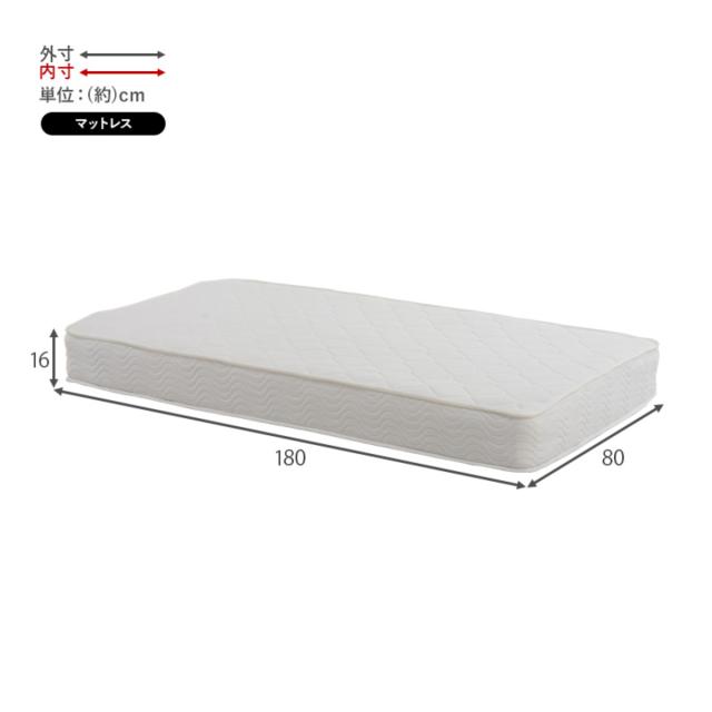 | サイズ | フレーム:約 幅85×奥行194×高さ82(cm) マットレス:約 幅80×奥行180×高さ16(cm) |