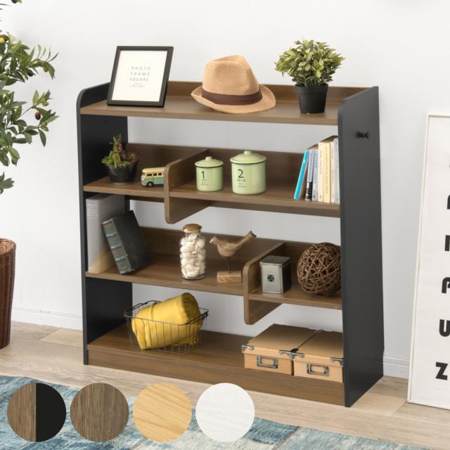 ディスプレイラック 幅90cm ワイドタイプ 可動棚 A4収納 ( 本棚 ラック 棚 ディスプレイ ワイド A4 省スペース オープンラック 収納 ブラック ブラウン ナチュラル ホワイトウォッシュ )