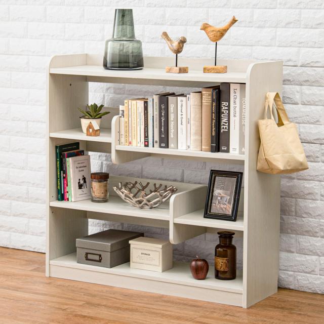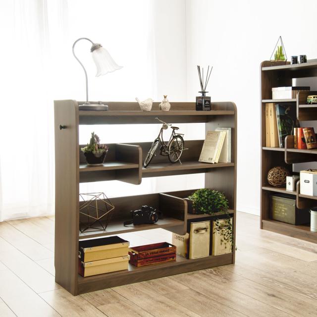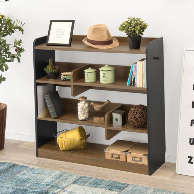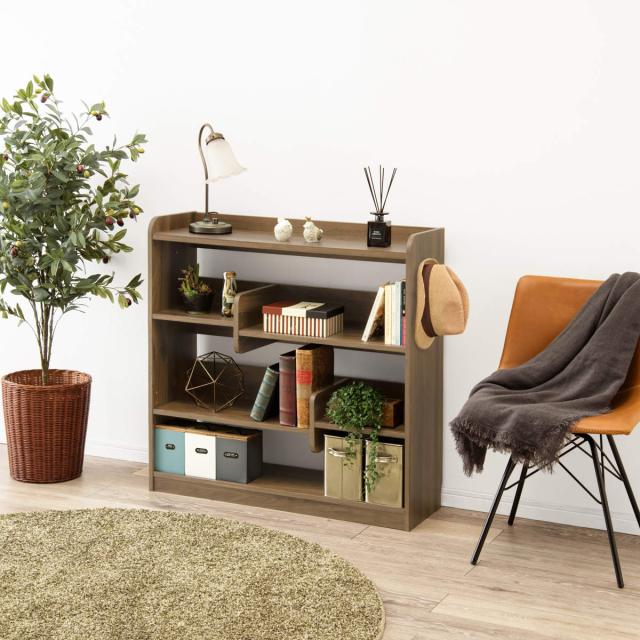 木目調の温もりを感じるデザイン性の高い本棚が、お部屋の雰囲気をワンランクアップさせてくれます。仕切りや可動棚、サイドフックなどの使いやすい機能性を兼ねそろえているので、本棚としてはもちろん収納棚やディスプレイラックとしてもお使いいただけます。