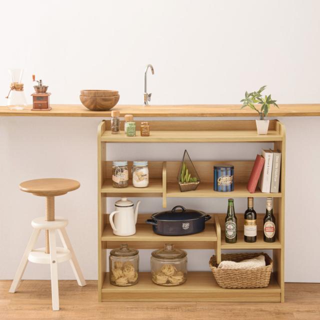 背板がなく、開放感のあるオープン仕様です。壁面に設置するのはもちろん、間仕切りとしてお部屋の中央にも設置できます。