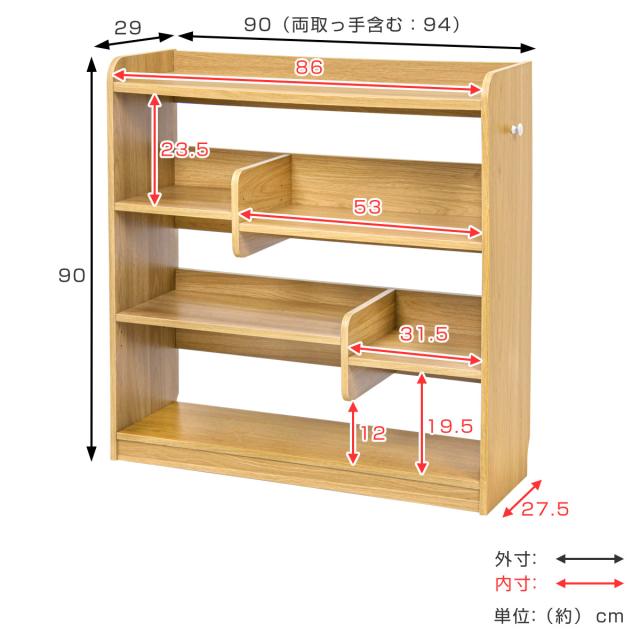 | サイズ | 約 幅90×奥行29×高さ90(cm) (両取っ手を含む:94cm) |