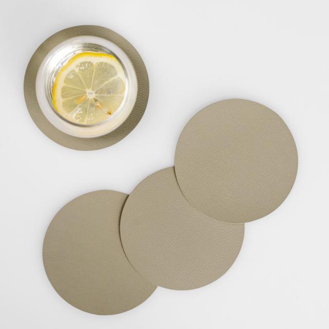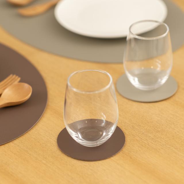 柔らかいレザーのような質感と、少しくすみのある上品なニュアンスカラーを組み合わせたコースターです。いつもの食卓にプラスするだけで料理や器が引き立ち、テーブルコーディネートがより華やかになります。