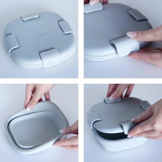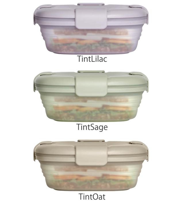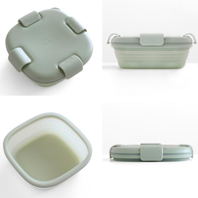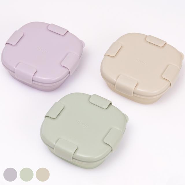 弁当箱 stojo 700ml 折りたたみ 半透明 BOX Tint ( ストージョ お弁当箱 ランチボックス 折り畳み レンジ対応 食洗機対応 シリコン BPAフリー お弁当 弁当 一段 正方形 クリア 4点ロック 保存容器 持ち運び コンパクト )