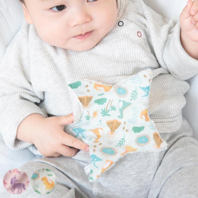 ベビー ハンカチ カシャカシャスターハンカチ ユニコーン ダイナソー ( おもちゃ ミニタオル にぎにぎ 恐竜 ゆにこーん ベビートイ 玩具 綿100% 出産祝い ベビーハンカチ ファーストトイ コットン プレゼント かわいい )