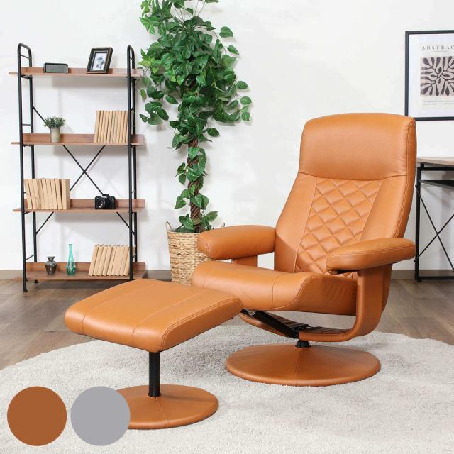 パーソナルチェア リクライニング オットマン付 クロス ( 回転 チェア 椅子 レザー調 ソフトレザー ゆったり リラックス ヘッドレスト アームレスト ビンテージ調 高級感 )