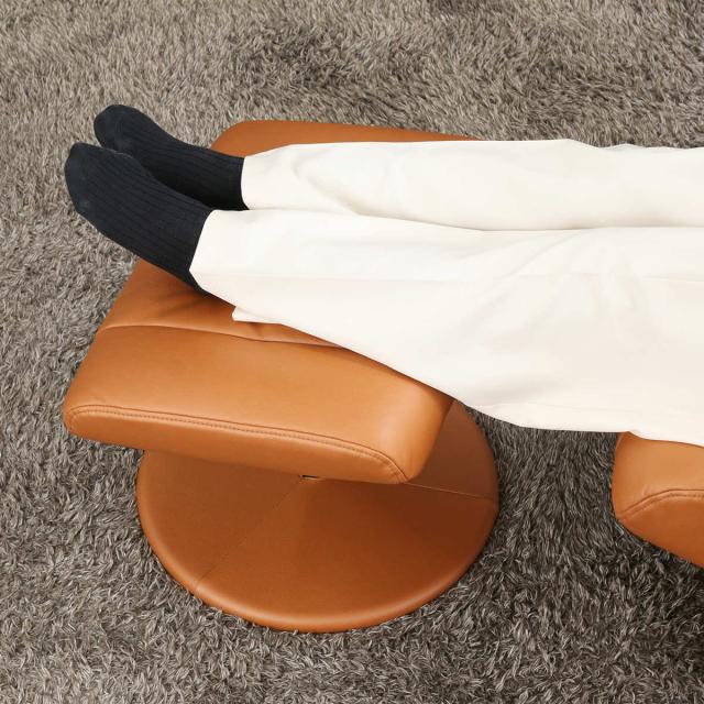 脚を預けられるお揃いのオットマン付きです。疲れた脚を伸ばしてゆったりとくつろぐことができます。十分に厚みがあり足先までしっかりサポートします。