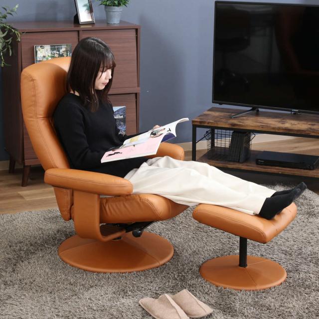 ゆったりくつろげるオットマン付き