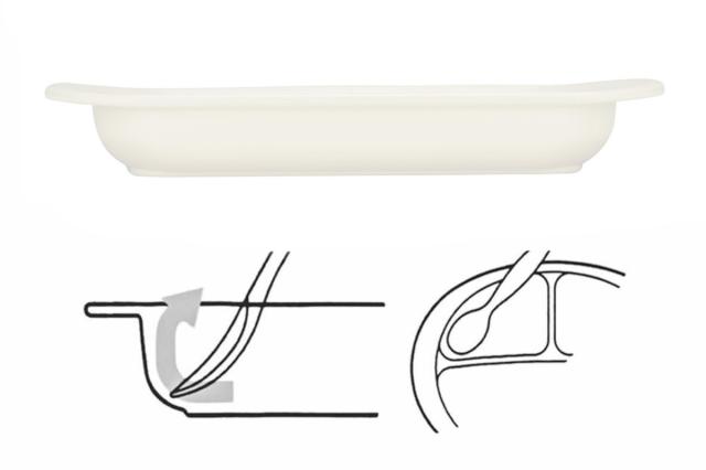 ●手前がほぼ直角の立ち上がりで食べ物がすくいやすい形状です。