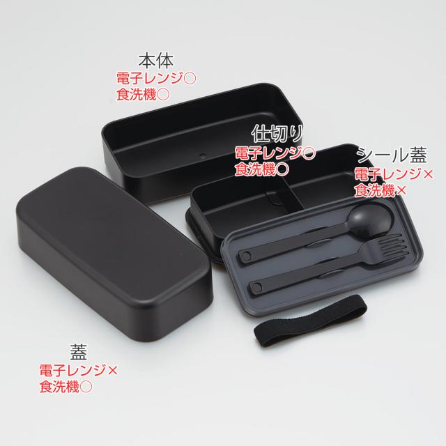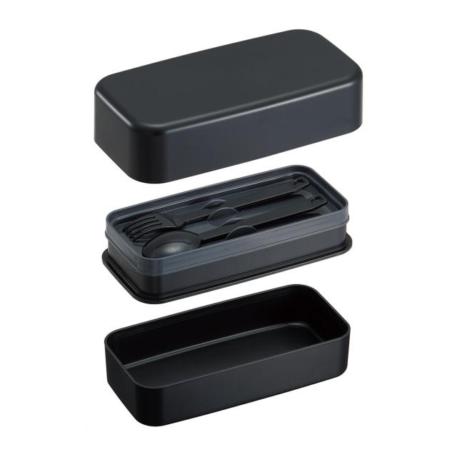 弁当箱 1000ml カトラリー付ランチボックス アッシュブラック ( ランチボックス 食洗機対応 レンジ対応 二段 カトラリー 付き 2段 日本製 仕切り付き スプーン フォーク 食洗機OK レンジOK お弁当 弁当 二段弁当 )
