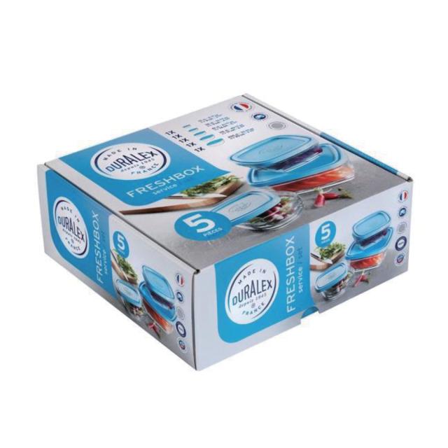 DURALEX デュラレックス カレボウル 5個セット 蓋付き ( 保存容器 電子レンジ対応 食洗機対応 ガラス 強化ガラス スタッキング 角型 食品保存 ガラス製保存容器 作り置き ストッカー 中身が見える クリア セット )