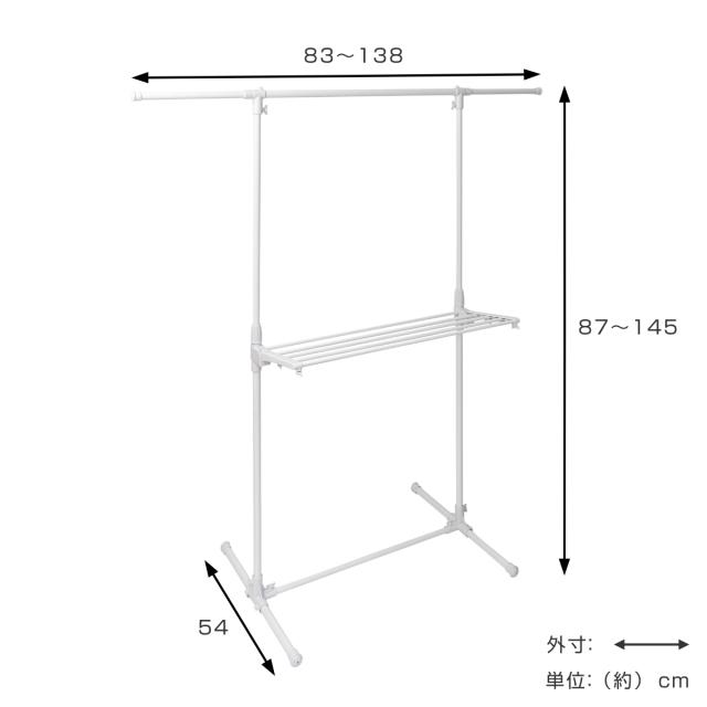 ●幅約83〜138cm、高さ約87〜145cmまで調整可能で、丈の長い洗濯物にも対応します。