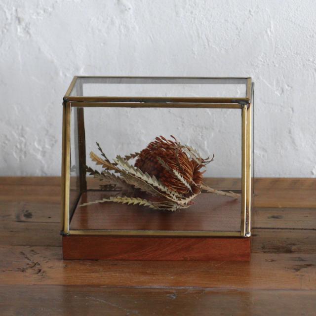 ●ドライフラワーや小物、アクセサリーなどを美しくディスプレイできるブラスショーケースです。
