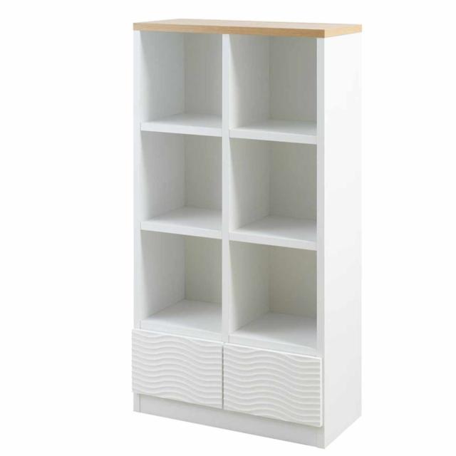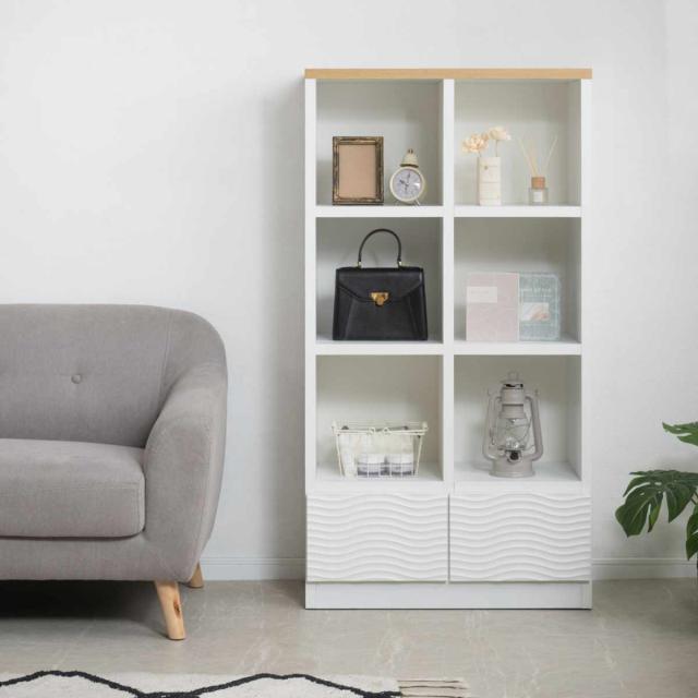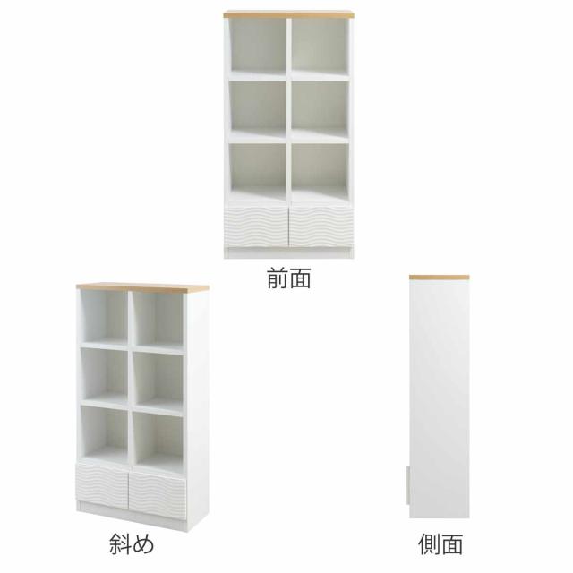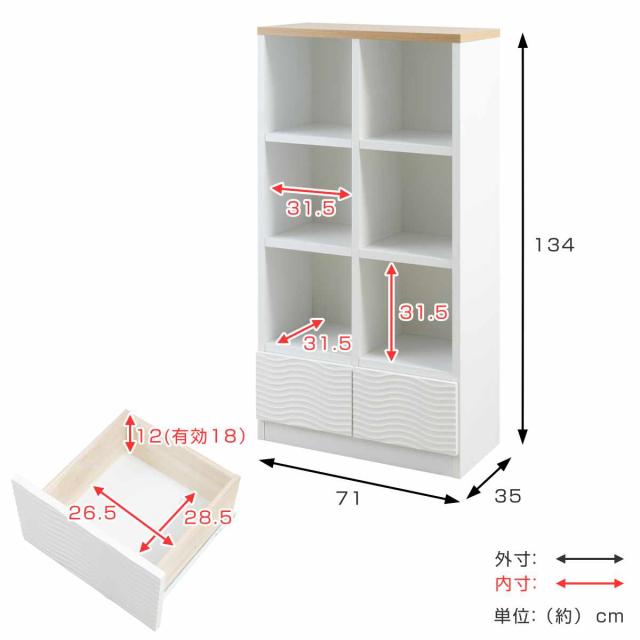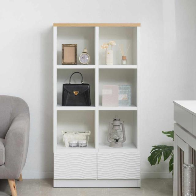 オープンラック 幅71cm ウェーブ模様 引出し2杯 日本製 完成品 ( wave ラック 本棚 棚 収納 飾り棚 ディスプレイ シェルフ 引出し ホワイト シンプル 2杯 )