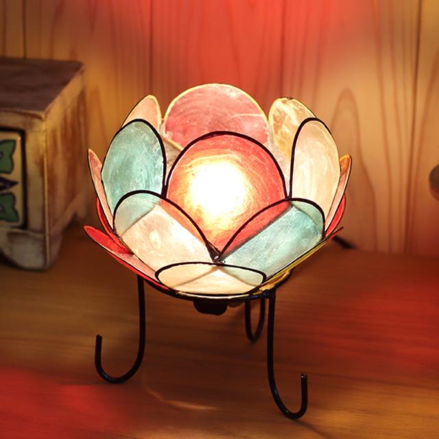 カピス貝を使ったキュートなロータス型ランプです。幻想的な光がこぼれ、リラックスムード溢れる空間を演出してくれます。