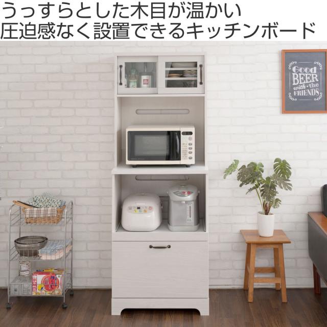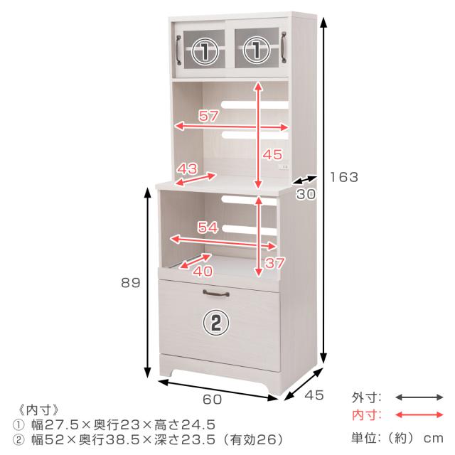 キッチンボード 幅60cm 2口コンセント×2ヶ ホワイト木目 ( Late ラテ レンジ台 収納 可動棚 コンセント付 家電 食器棚 ラック 棚 キッチン ホワイト 白 引出し スライドレール )