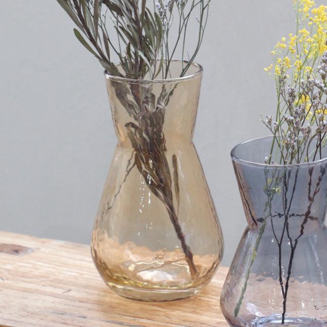 ガラス表面に入った凹凸のテクスチャーが特徴のフラワーベース Lサイズです。シンプルでありながら、どこか特別感を漂わせるフォルムと、凸凹のあるガラスが光を受けてきらめくたび、花瓶そのものが空間に華やかさをもたらします。