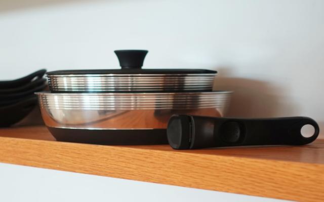 取っ手が外せるのでコンパクトに収納でき、場所を取りません。