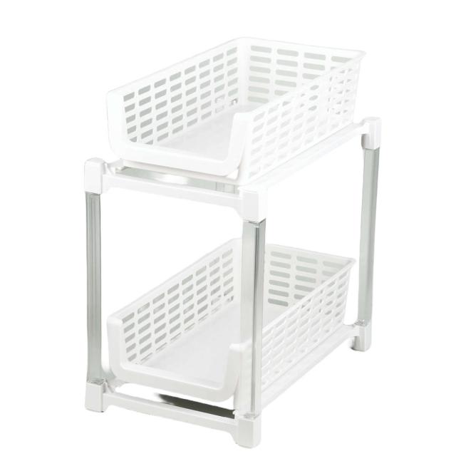 棚部分はスライド式なので、奥のものも取り出しやすいです。また中身が見やすく整理がしやすいです。シンク下だけでなく、洗面台下やクローゼットの隙間収納、物置きの整理など、様々な場所で活躍します。