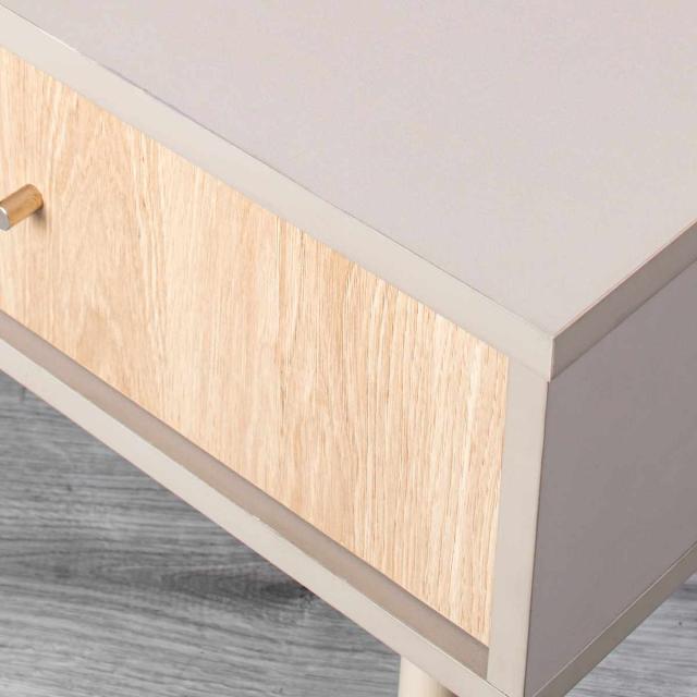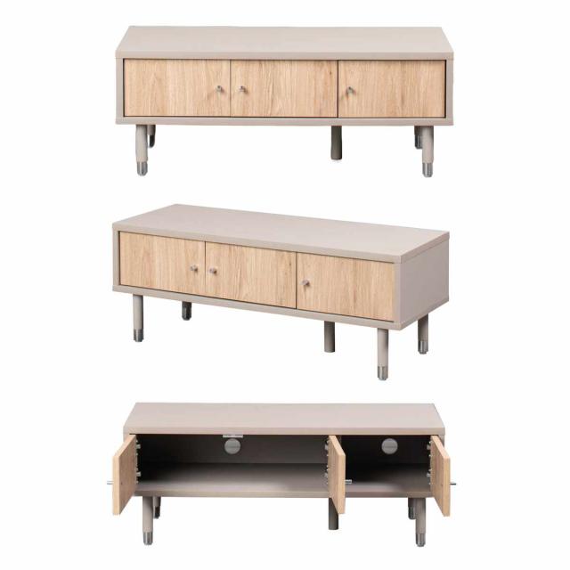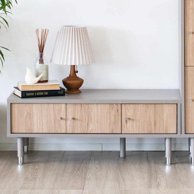 ナチュラルな空間にもモダンな空間にも馴染む「シュランク」シリーズのテレビ台です。やわらかなグレージュとナチュラルな木目柄の組み合わせが、お部屋に温もりと上品さをプラス。シルバーの取っ手と脚がさりげないアクセントになっています。
