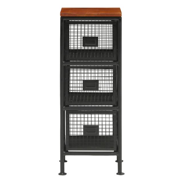 スチールメッシュ スリムチェスト 幅30cm 引出し3杯 木天板 完成品 ( チェスト スチール 引き出し 3杯 木製天板 棚 ラック 飾り棚 カゴ メッシュ ブラック )