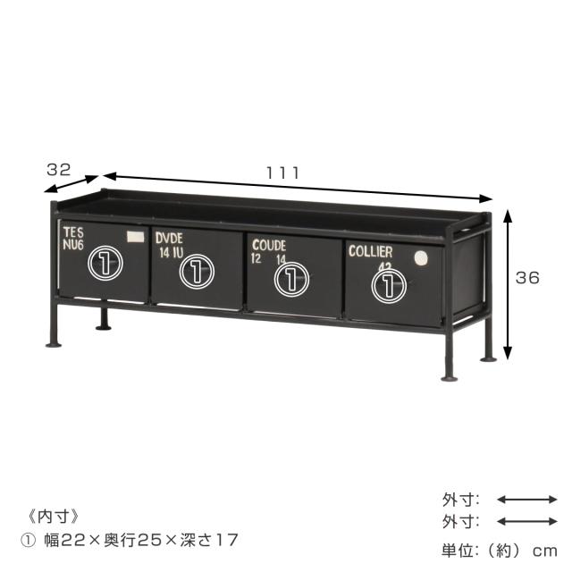 スチールチェスト 幅111cm 引出し4杯 インダストリアル 完成品 ( チェスト スチール 引き出し 4杯 棚 ラック 飾り棚 ブラック グレー ベージュ )