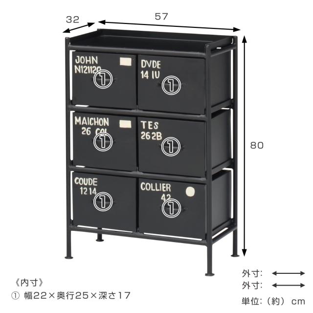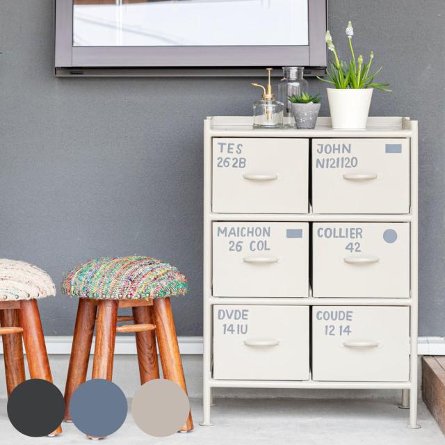 スチールチェスト 幅57cm 引出し6杯 インダストリアル 完成品 ( チェスト スチール 引き出し 6杯 棚 ラック 飾り棚 ブラック グレー ベージュ )