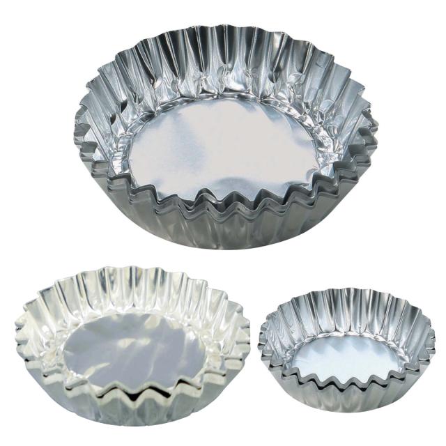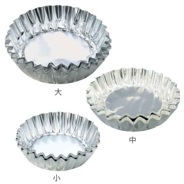 縁が花びらのように波型になっている、やや浅型の純度の高いアルミ箔です。マドレーヌやタルトレットの生地を流し込み、そのままオーブンに入れるだけで簡単にお菓子作りを楽しめます。種類は「大・中・小」の3種類からお選びいただけます。「大・中」は各20枚入り、「小」は30枚入りです。