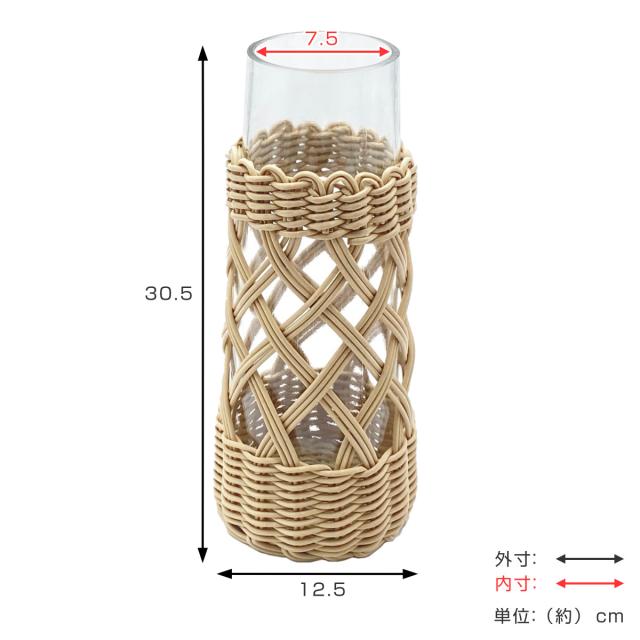 花瓶 ヴァス フェイクPE 柳フラワーベース 円柱型 ( 花ビン 花びん 花器 ベース フラワーベース フラワー 花 飾る 花入れ ガラス ガラス製 クリア 透明 おしゃれ 洗える 天然素材風 持ち手付き 一輪挿し )