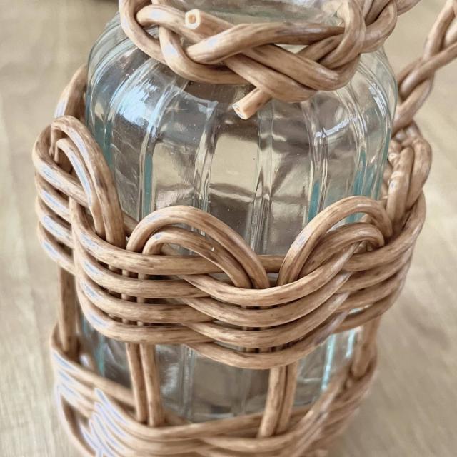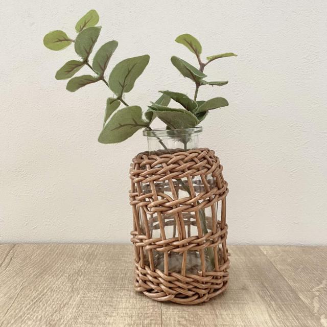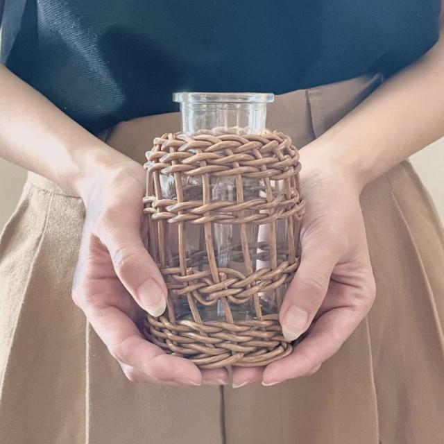 本物の柳に近い風合いのフェイク素材を使用したフラワーベースです。丸みのある形がかわいい「ミルク瓶型」厚みのあるガラスにひとつひとつ丁寧に編み込んで作られた温かみのあるデザインです。