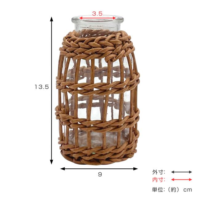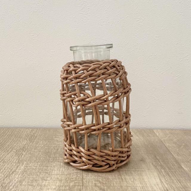 花瓶 ヴァス フェイクPE 柳フラワーベース ミルク瓶型 ( 花ビン 花びん 花器 ベース フラワーベース フラワー 花 飾る 花入れ ガラス ガラス製 クリア 透明 おしゃれ 洗える 天然素材風 一輪挿し )