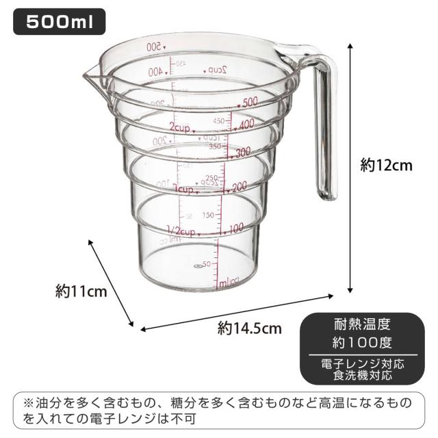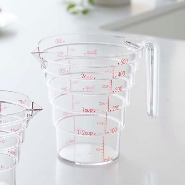 山崎実業 電子レンジ対応 段々計量カップ 500ML ( 4903208027007 軽量カップ メジャーカップ 食洗機対応 500ml 持ち手付き 透明 見やすい 料理 製菓 お菓子作り 計量カップ クリア 計量コップ 計量器具 )