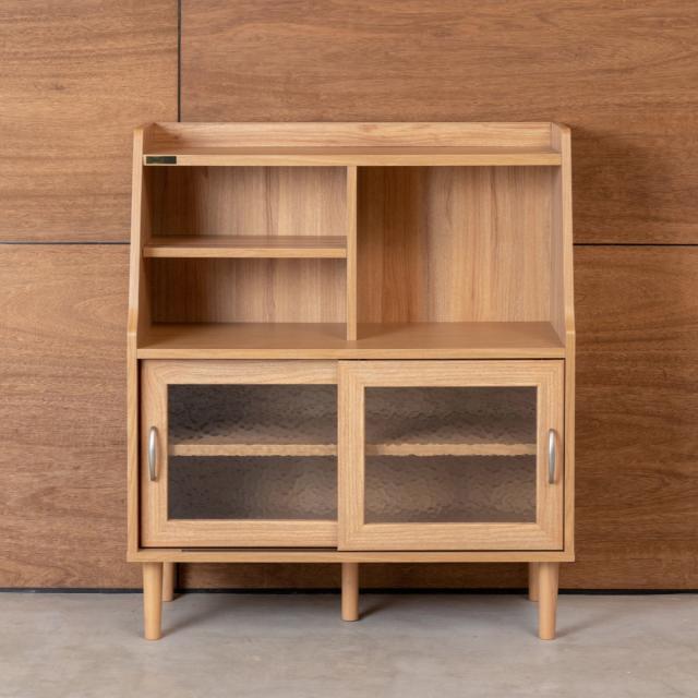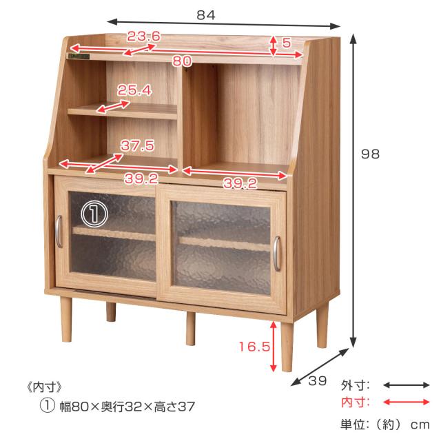 ミニシェルフ 幅84cm すりガラス扉 ( ジェロディ joredy ラック 棚 シェルフ 飾り棚 可動棚 お掃除ロボット対応 モザイクガラス レトロ 家具 コンパクト )