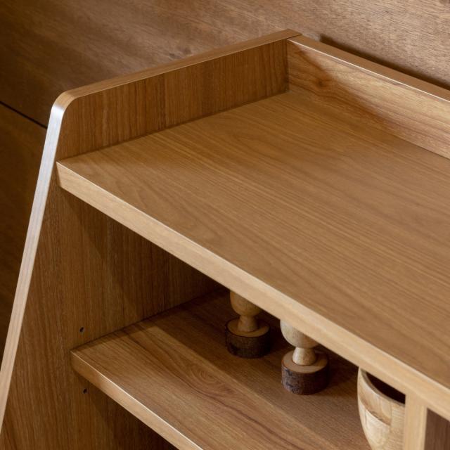 最上段はサイドフレーム付きです。散らかりがちな小さな小物もサッと置くことができます。お気に入りの小物を飾ってディスプレイも楽しめます。