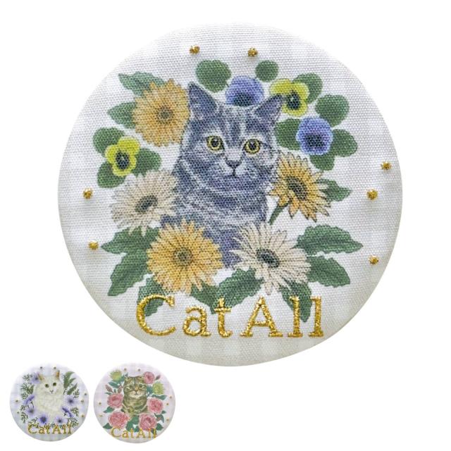 ミラー キャットオール 刺繍 ポケットミラー ( 鏡 小さい 携帯 コンパクト ハンドミラー メイク直し お直し 猫 ねこ 動物 コンパクトミラー 丸型 小さめ 持ち運び かわいい おしゃれ 大人 プレゼント 雑貨 )