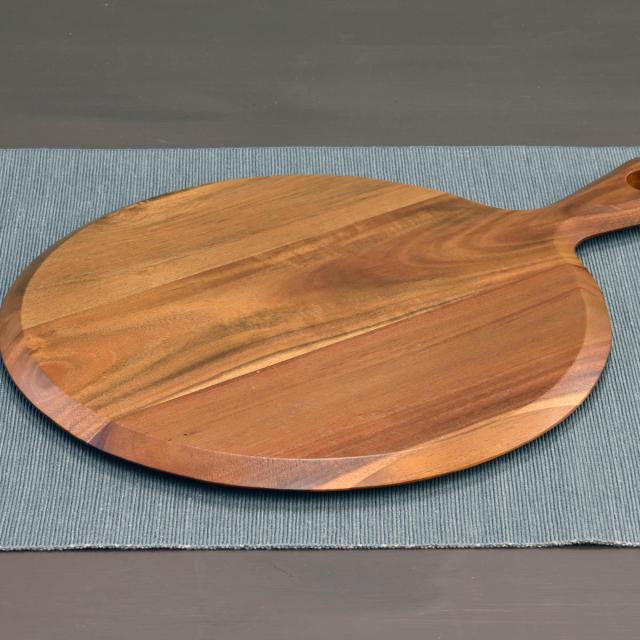 カッティングボード アカシア 丸 パドルボード M 奥行28cm ( 木製 ボード 丸型 ピザボード ピザ皿 プレート 皿 お皿 おしゃれ かわいい 北欧 北欧風 取っ手付き まな板 パン カフェ サービングボード )