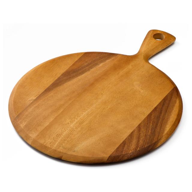 カッティングボード アカシア 丸 パドルボード L 奥行31cm ( 木製 ボード 丸型 ピザボード ピザ皿 プレート 皿 お皿 おしゃれ かわいい 北欧 北欧風 取っ手付き まな板 パン カフェ サービングボード )