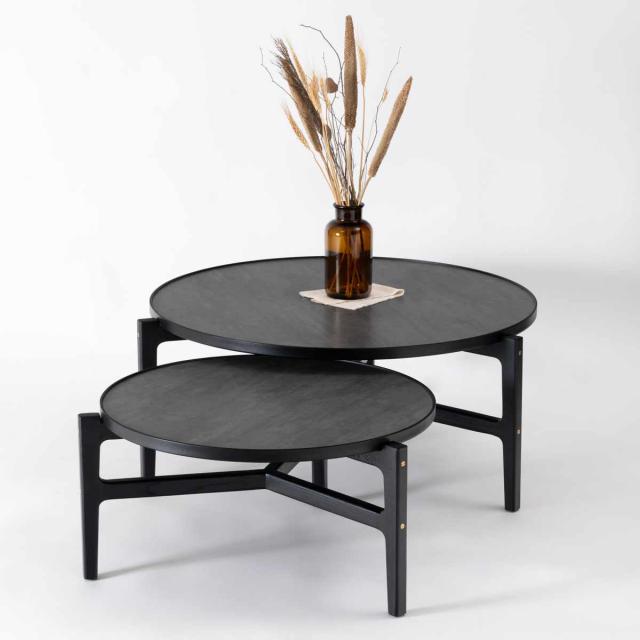 サイズ違い(直径86.5cm)のローテーブルと組み合わせれば、ネストテーブルとしてもお使いいただけます。テーブルを重ねて広く使えるメインテーブルにしたり、セパレートで思いのままに配置したり、シーンやアイテムに合わせて様々な使い方が楽しめます。