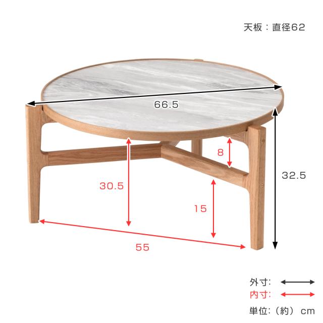 form ローテーブル 円型 幅66.5cm クロッカス ( リビングテーブル センターテーブル 木製 天然木 石目調 天板 丸 円形 テーブル 机 完成品 リビング 3本脚 丸テーブル ソファテーブル コーヒーテーブル )