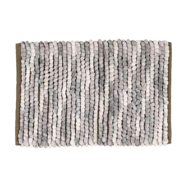 ポコポコとした凹凸は、歩くたび足裏に心地よさを与えます。 やわらかな優しい肌触りと、ランダムなグラデーションの濃淡に癒されます。 また、マットの土台部分は綿素材を使用しているため、吸水性と通気性に優れています。