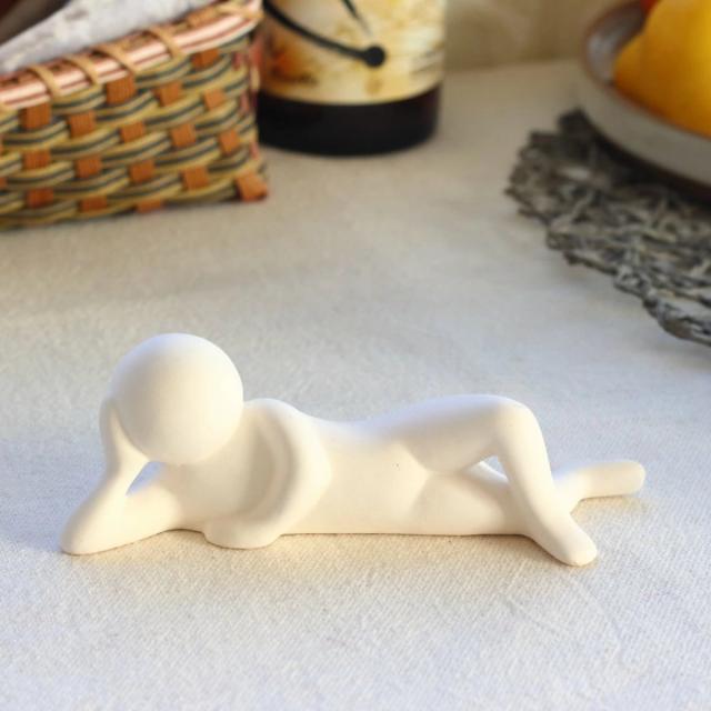 ゆるいリラックスポーズが特徴的なアロマストーン「リラックス君」です。そのままの素材感を大切にした真っ白なさらさらとした陶器製です。香りはもちろん、見ているだけでも心が癒されます。